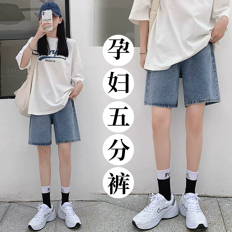 Maternity denim shorts, summer loose tummy support jeans, maternity loose casual pants, trendy mom outer wear hot pants for women