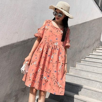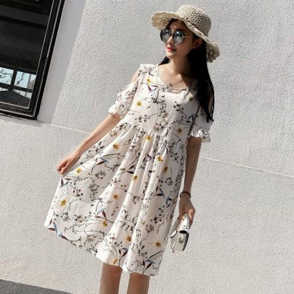 Maternity dress dress loose small floral summer chubby girl elegant sweet dress mid-length fresh