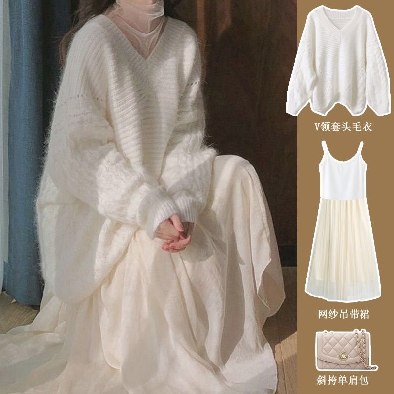 | nameOriginal | Maternity Dress Light Mature Gentle Style Light Luxury Socialite Super Fairy Sweater Two-piece Set Mesh dress Half-length Skirt |