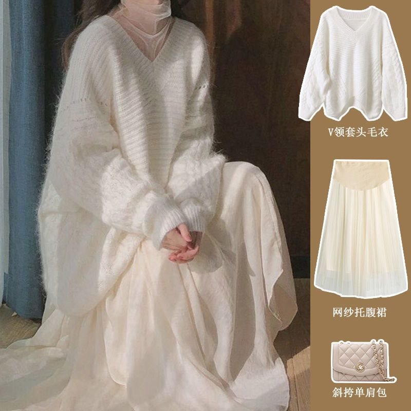 | nameOriginal | Maternity Dress Light Mature Gentle Style Light Luxury Socialite Super Fairy Sweater Two-piece Set Mesh dress Half-length Skirt |