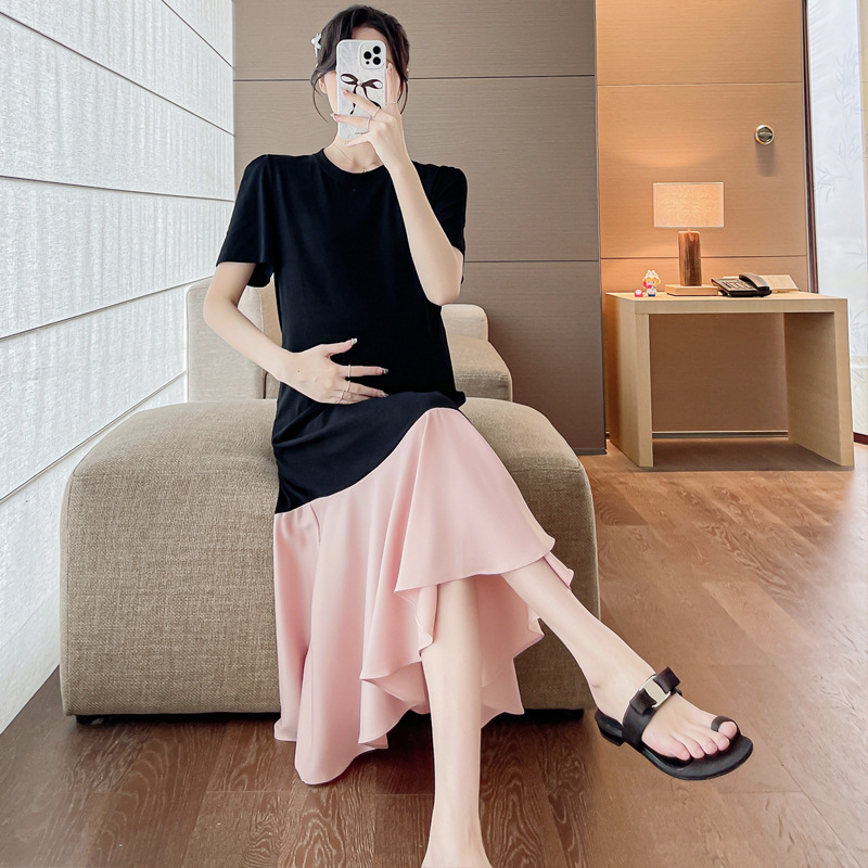 | nameOriginal | Maternity Dress Real Shot Summer Dress New Irregular Contrast Color Stitching Short Sleeve dress Loose Casual Round Neck T-Shirt Dress |