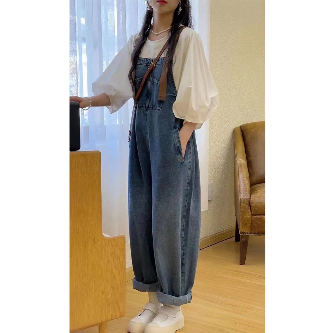| nameOriginal | Maternity Fashion Summer Two-piece Western Style Bubble Sleeve Top Slimming Spring and Autumn Casual Denim Strappy suit |