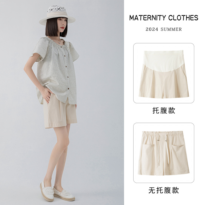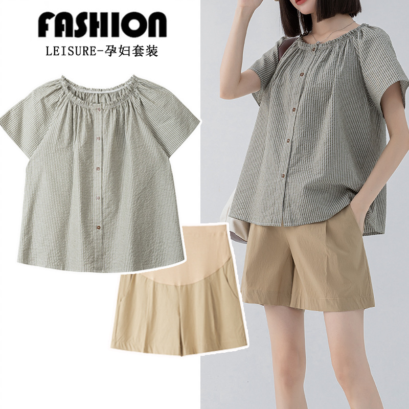 Maternity suit Summer Fashion 2024 New French Striped Casual Loose Short-sleeved Shirt Top Two-piece Set