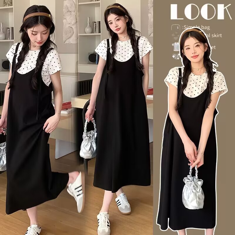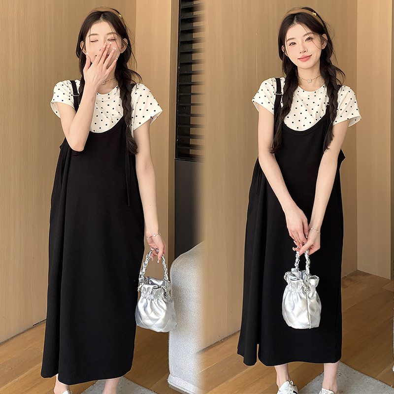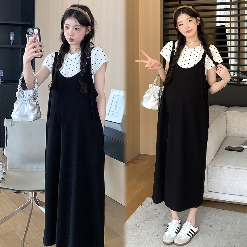 Maternity Summer 2024 New Arrival dress Fashion Strand Dress suit Short-Sleeved Women's Summer Dress Two-Piece Fashionable Set