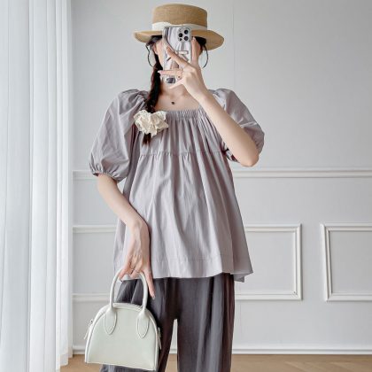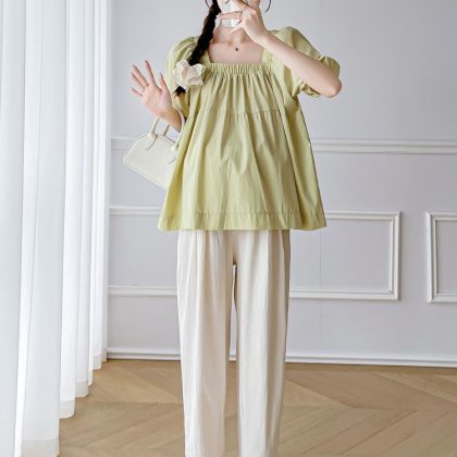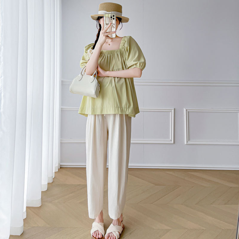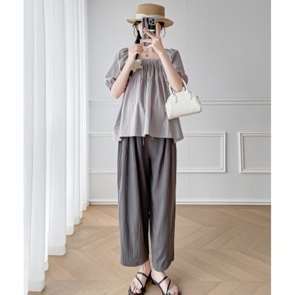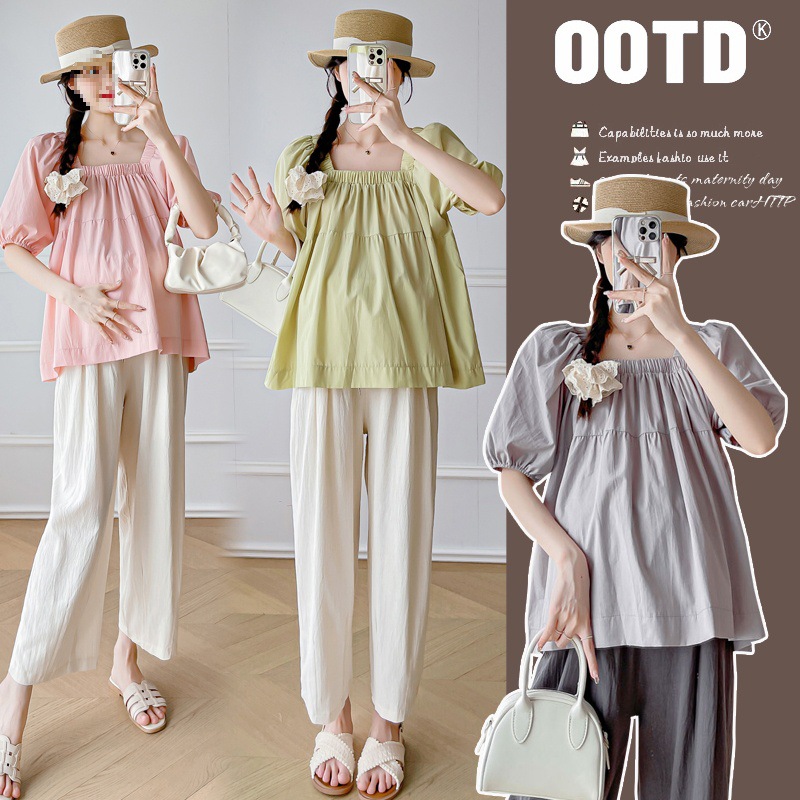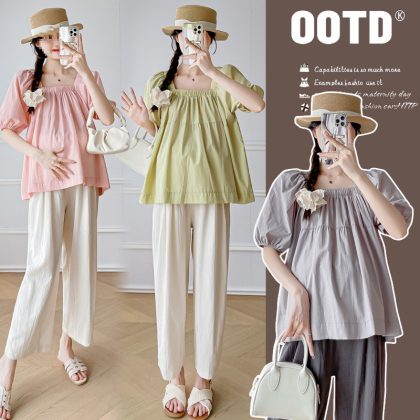 Maternity Summer 2024 New Fashion suit Short-sleeved Top Pants Two-piece Summer plus size Fashionable