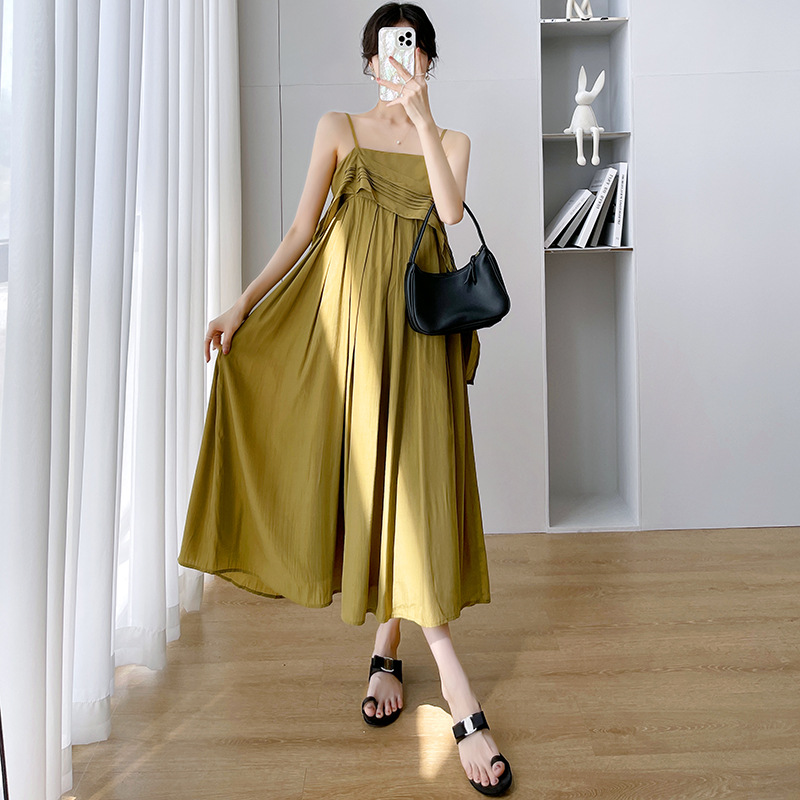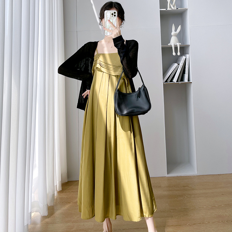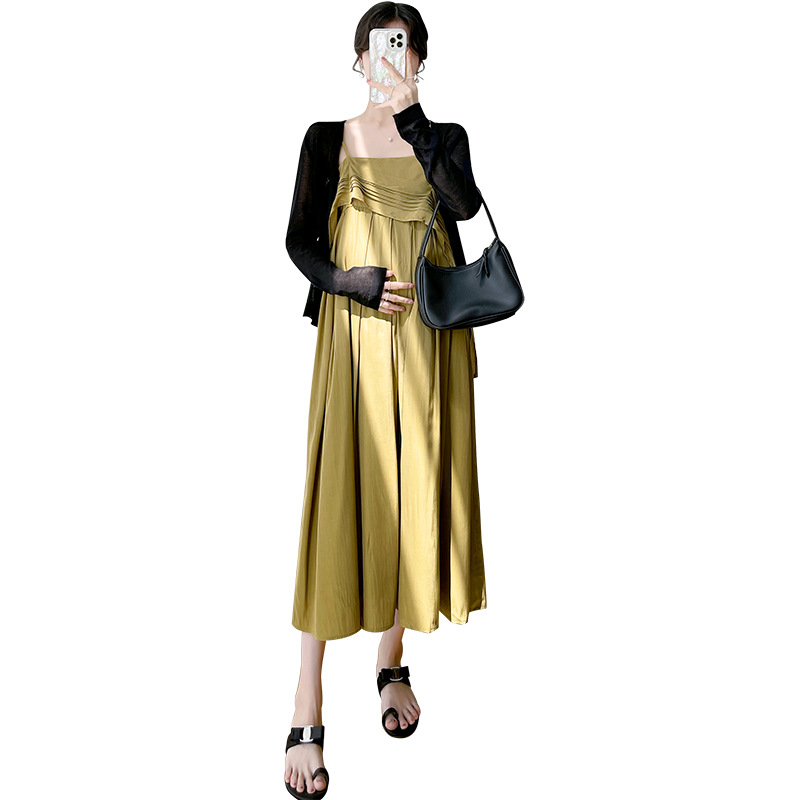 Maternity Summer New French Retro Sling Pregnant Women + Black Small Cardigan