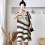 | nameOriginal | Maternity summer short-sleeved lapel striped dress 2024 new summer Korean style skirt mid-length maternity dress |