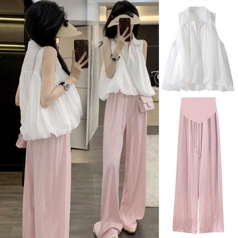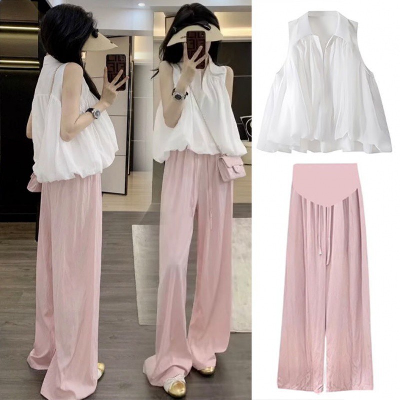 | nameOriginal | Maternity Summer suit Internet Popular French Style Sleeveless Wide Leg Pants Loose Lazy Style Belly Covering Trendy Two-piece Set for Mothers |