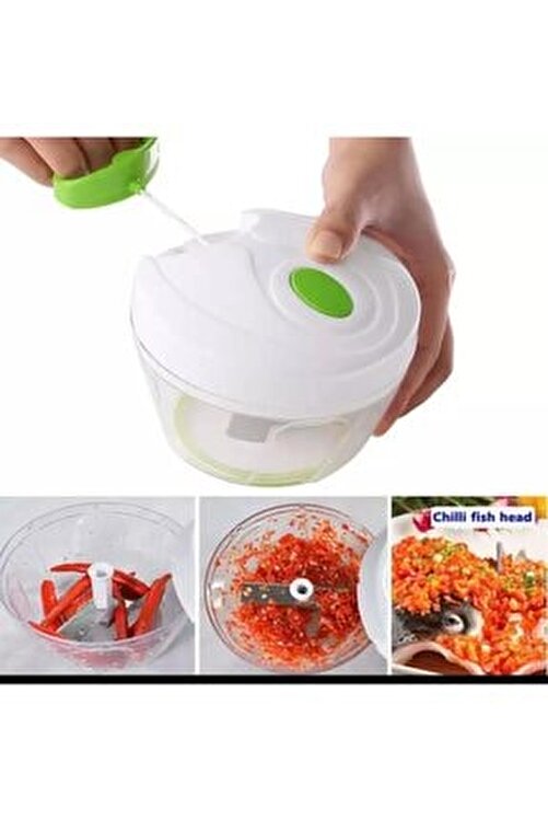 3 Blade Drawstring Hand Rondo Chopper Fruit, Vegetable, Onion Chopping Drop Chopper practical chopper allows you to cut your vegetables quickly and easily, you can produce delicious flavors thanks to its 3-blade structure and rotary rotary mechanism that provides ease of use. You can prepare beautiful sauces from each other using different ingredients. In a few seconds, you can chop onions, garlic, carrots and more. Thanks to its compact and lightweight structure, it takes up very little space in your kitchen. Very easy to clean, dishwasher safe. Product Features: – Quality plastic body – Stainless steel blade Product Size: Diameter: 12.5 cm Height: 8.5 cm
