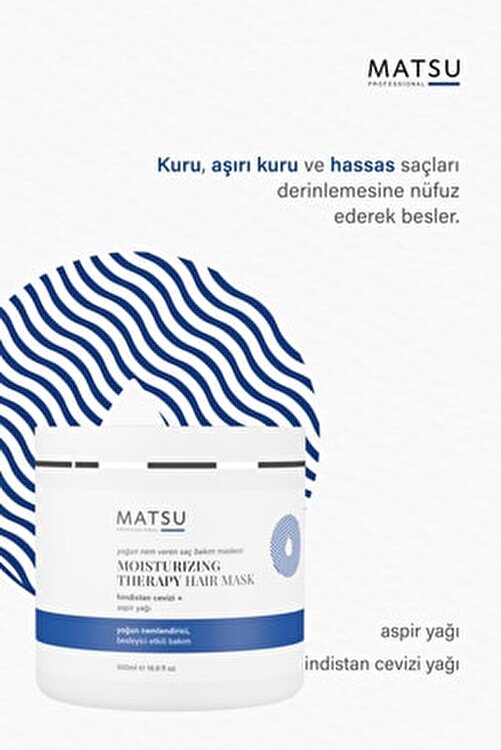 USE MATSU Moisture Therapy Hair Care Mask Apply with your hands so that it does not come to the roots of the hair. With the help of a fine-toothed comb, comb your hair, thoroughly feed the product into your hair. Leave on your hair for at least 20 minutes, then rinse with plenty of water. If necessary, repeat the procedure. Suitable for daily use.