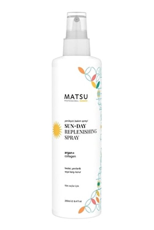 MATSU Sun Day Heat Protective Replenishing Hair Care Spray 250ml+ MATSU Intensive Repair Intensive Care Mask For Damaged Hair 500ml. Matsu Sun-day Replenishing Argan care spray is designed to protect hair up to 450°F (232°C) to give it a shiny and healthy appearance. UV filters and nourishing Argan oil provide resistance and smoothness to sensitive and unresisted hair, while protecting hair from damage caused by sun rays and heat treatment. APPLICATION Shake well to mix the two-component formula evenly. Spray the hair from root to end. Scan for equal application, then immediately blow or shape as you like. MATSU Intensive Repair Intensive Care Mask For Damaged Hair is an intensive hair care mask for very worn and overtreated hair. It targets hair strands with restorative, nourishing and moisturizing agents of Keratin and Argan components. It has the effect of restoring its strength and elasticity by deeply repairing damaged parts of dried and worn hair caused by mechanical and environmental factors. Apply Matsu Intensive Hair Care Mask to the length and ends of the hair with your hands or with the help of a brush. With the help of a fine-toothed comb, comb your hair, thoroughly feed the product into your hair. Leave on your hair for at least 20 minutes, then rinse with plenty of water. If necessary, repeat the procedure. Suitable for everyday use.
