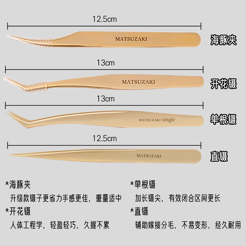 | nameOriginal | Matsuzaki tweezers set high-precision blooming tweezers grafting tools eyelash artist straight tweezers single tweezers dolphin clip |