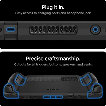 Introducing the Spigen Rugged Armor case cover designed specifically for the Steam Deck gaming console. This case cover comes in a sleek matte black finish and is made of high-quality TPU material that provides superior protection against scratches and shocks. The case cover also features a wrist strap for added convenience and portability. With its shock-absorption technology, the Spigen Rugged Armor case cover ensures that your Steam Deck stays safe and secure even during intense gaming sessions. This case cover is a must-have accessory for any Steam Deck owner who wants to keep their console in pristine condition.