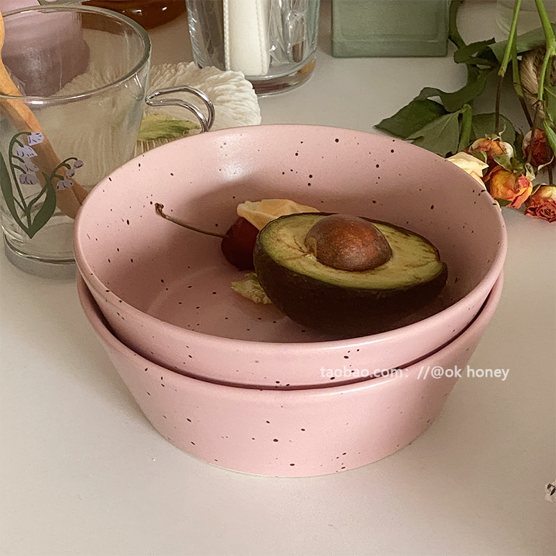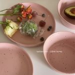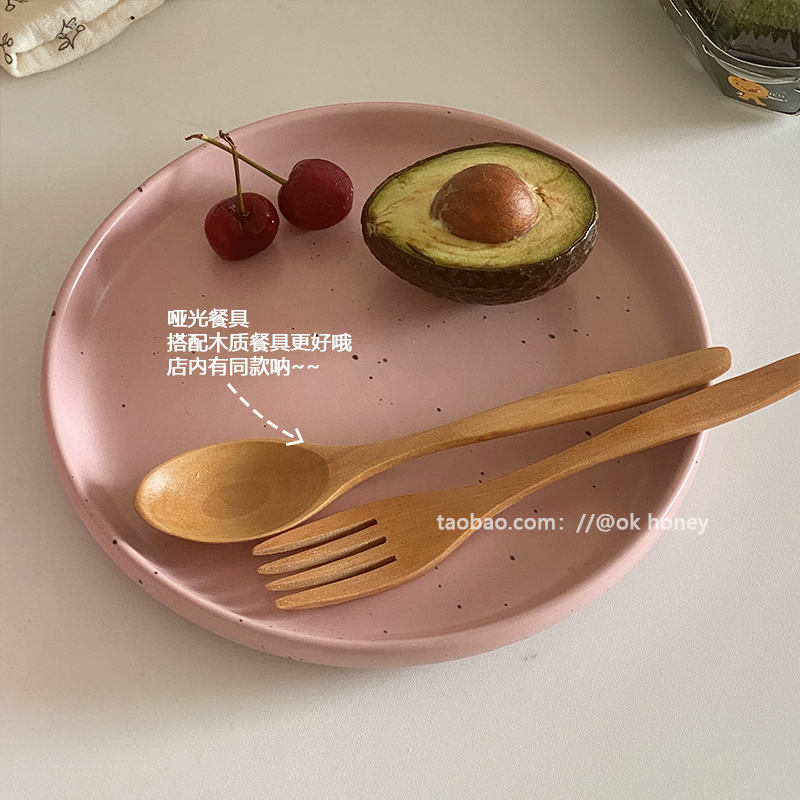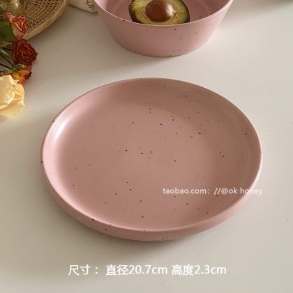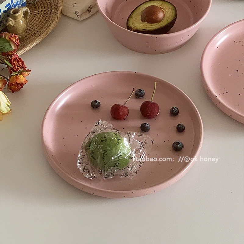 Matte Pink Splash Ink Dot Steak Plate Ins Style Simple Steak Dessert Thick Plate Fruit Salad Oats