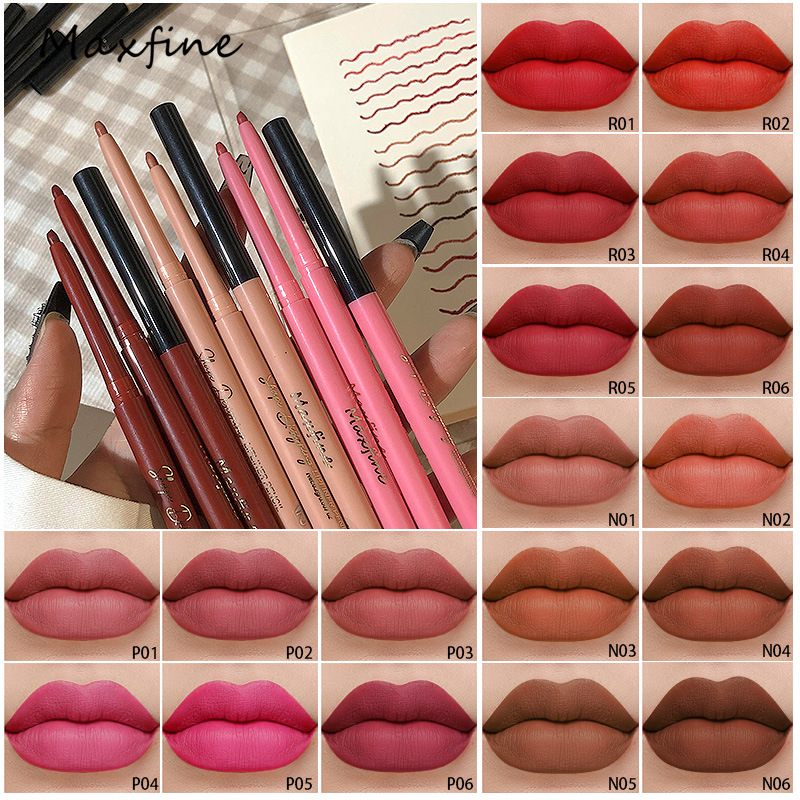Maxfine cross-border matte lip liner non-stick cup lasting European and American foreign trade makeup hook line lipstick pen wholesale