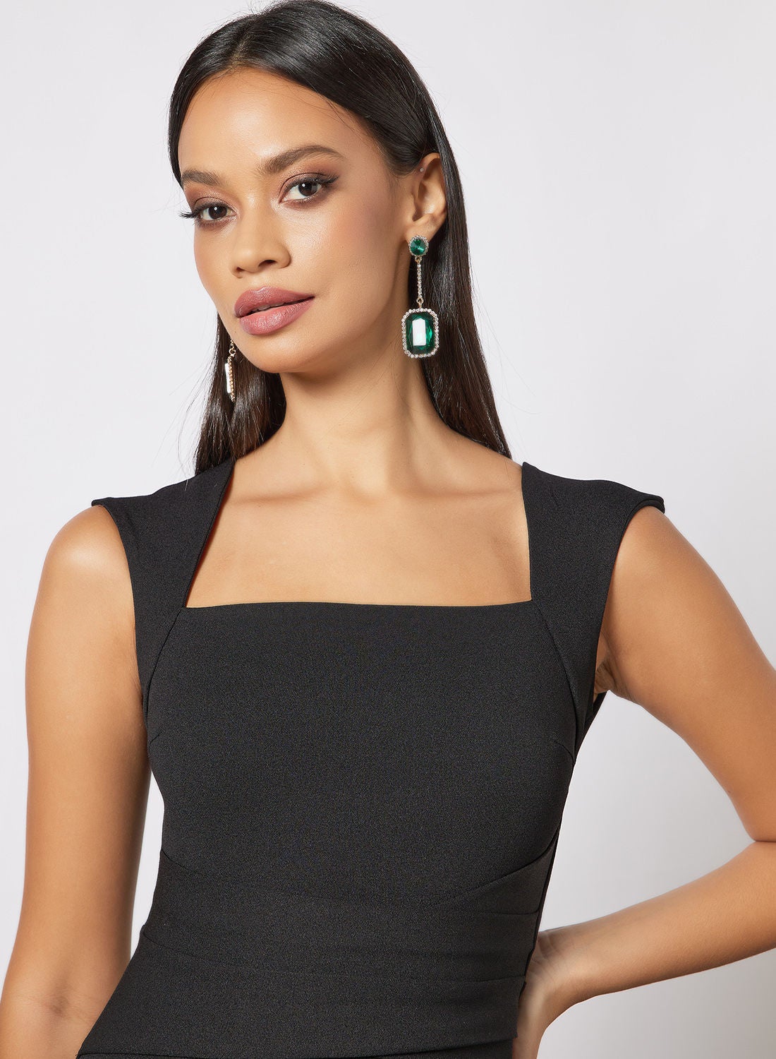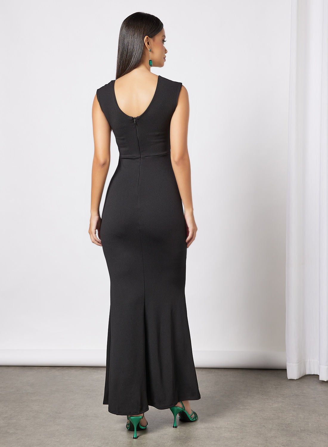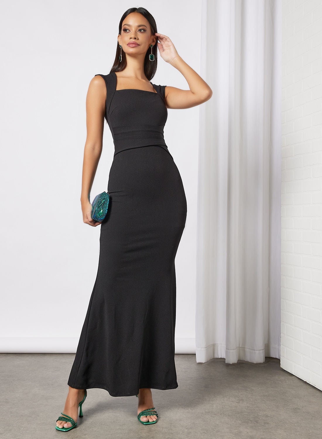 This product features a blend of polyester fabric that is both soft and stretchable. It has a square neckline and sleeveless design, with a concealed zipper closure at the back. The mermaid cut and maxi length add a touch of elegance to the overall look. To maintain its quality, please follow the care label instructions when washing. The model in the picture is approximately 178cm tall and is wearing a size 8.
