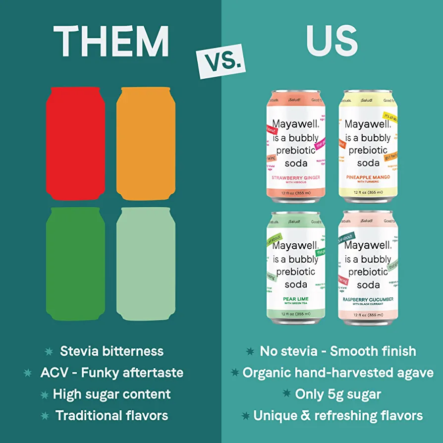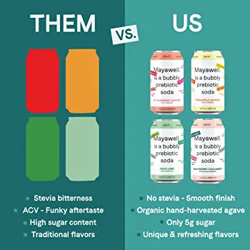A HEALTHY SODA ALTERNATIVE: Say hello to a fiesta of flavor. There’s no reason a healthier soda option shouldn’t taste great too. Mayawell combines bold, refreshing flavors with functional ingredients to create better-for-you drinks that are good for the gut and better for the tastebuds. Naturally sweetened with no refined sugar, our prebiotic soda is perfect for any occasion: morning, noon, or night.
