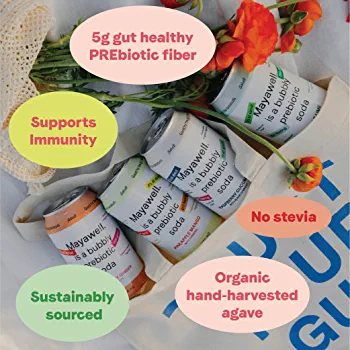 PREBIOTICS PROMOTE GUT HEALTH: Research shows that prebiotics play a vital role in maintaining a healthy gut, which ultimately means a healthier happier you. If probiotics are the seed, think of prebiotics as the water. Improved digestion, stronger immune system, better metabolism, and Mayawell prebiotic soda is made with organic prebiotic fiber from the agave plant providing you with 5g prebiotic fiber, and so versatile; it’s perfect out the can, as a mocktail, or mixed with your fav mezcal.