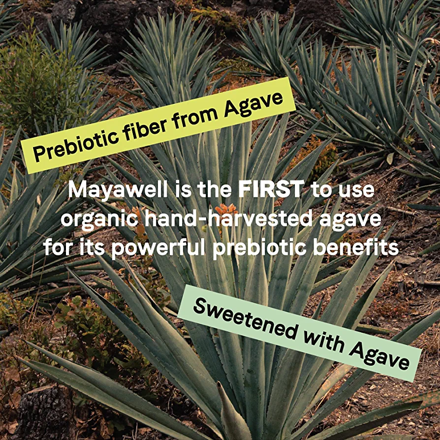 NO CANE SUGAR, NO STEVIA, NO BULLSH*T: Mayawell is the FIRST to use organic hand- harvested agave for its powerful prebiotic benefits and utilizes the plant as both a sweetener and a source of prebiotic fiber. Only 4g sugar, less than 40 calories, and packed with 5g gut-friendly prebiotics!