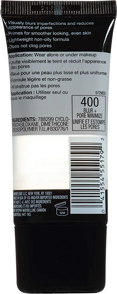 | nameOriginal | Maybelline Facestudio Master Prime Primer Makeup, Blur + Pore Minimize, 1 fl. oz. |