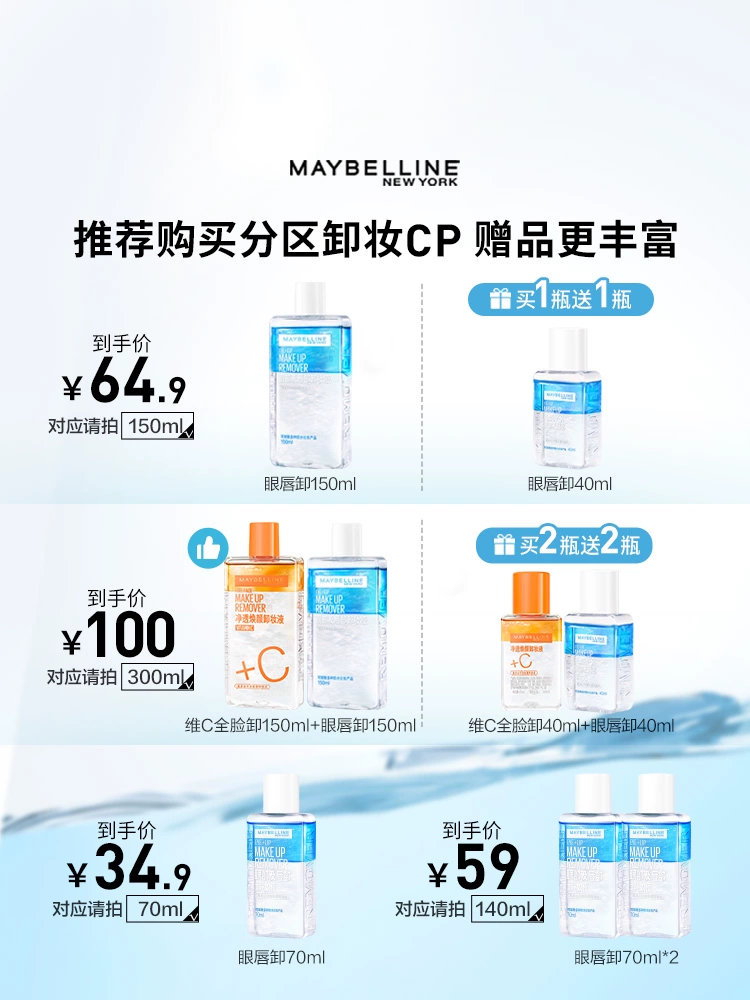| nameOriginal | Maybelline New York eye and lip makeup remover oil gentle and non-irritating three-in-one deep cleansing water and oil separation |