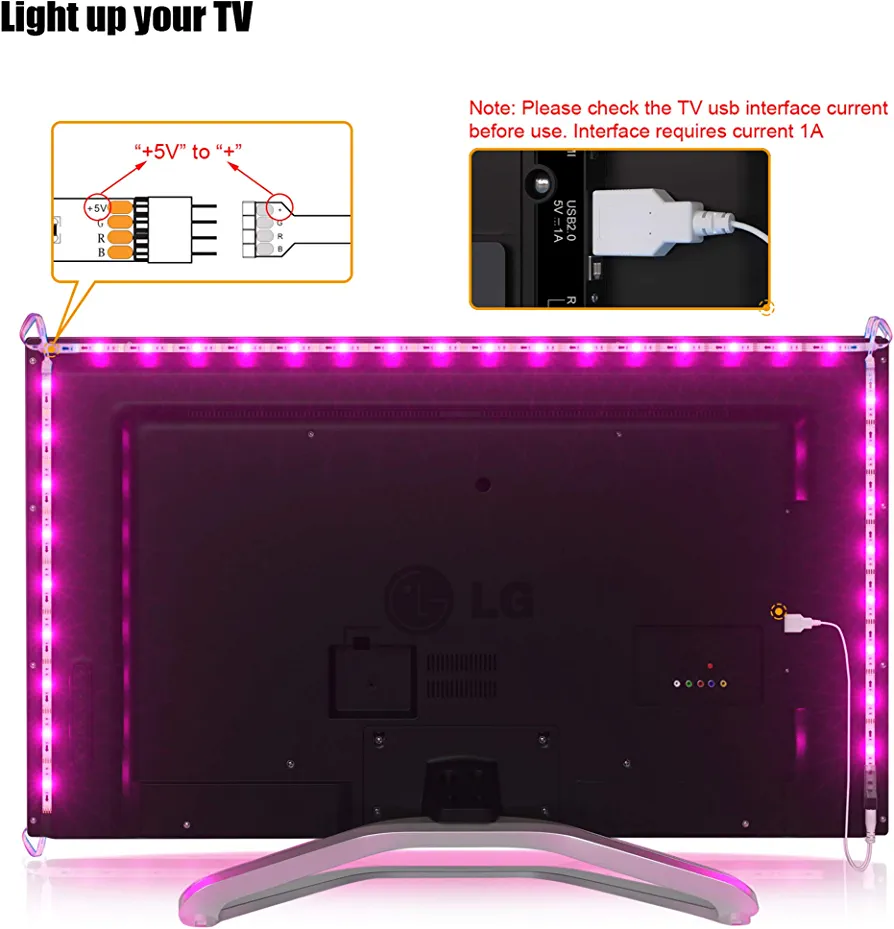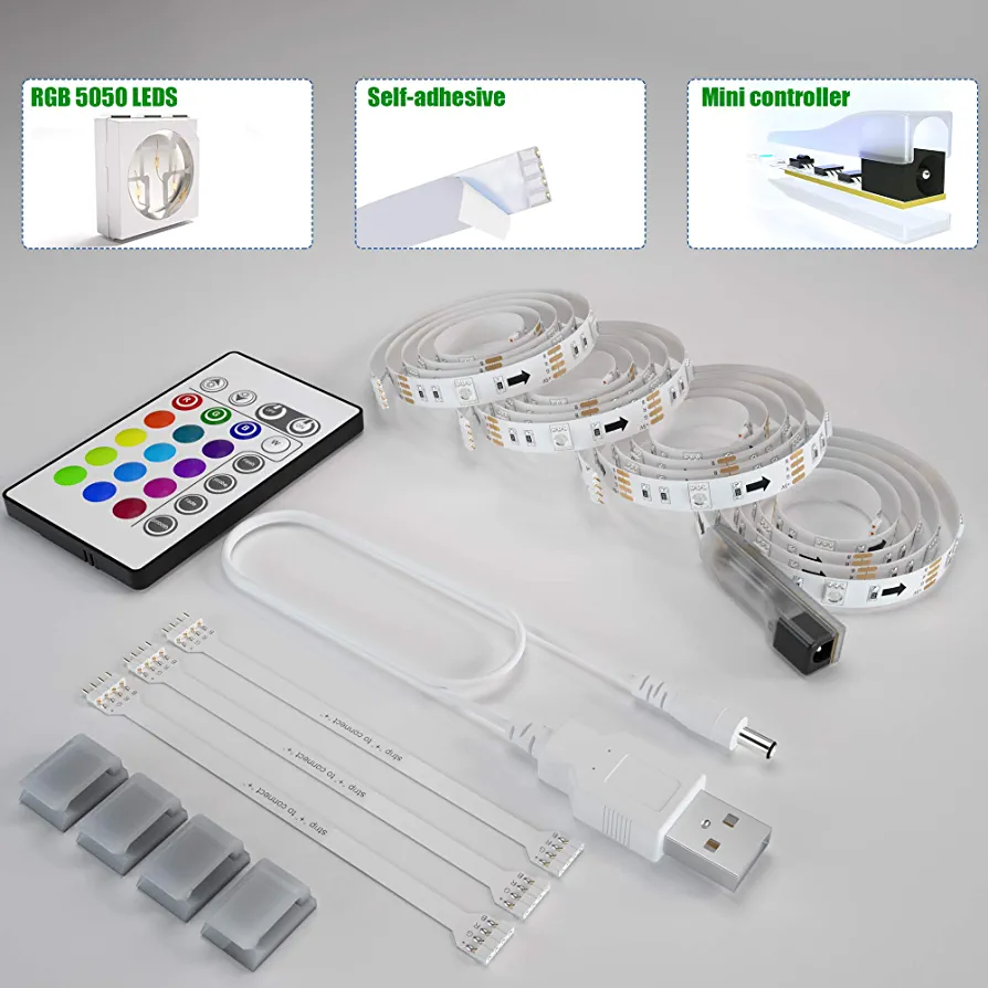 | nameOriginal | Tv Led Backlight,Maylit Pre-Cut 6.56ft Led Strip Lights for 40-60in Tv,4Pcs USB Powered Tv Lights kit with Remote,RGB Bias Lighting for Room Decor |