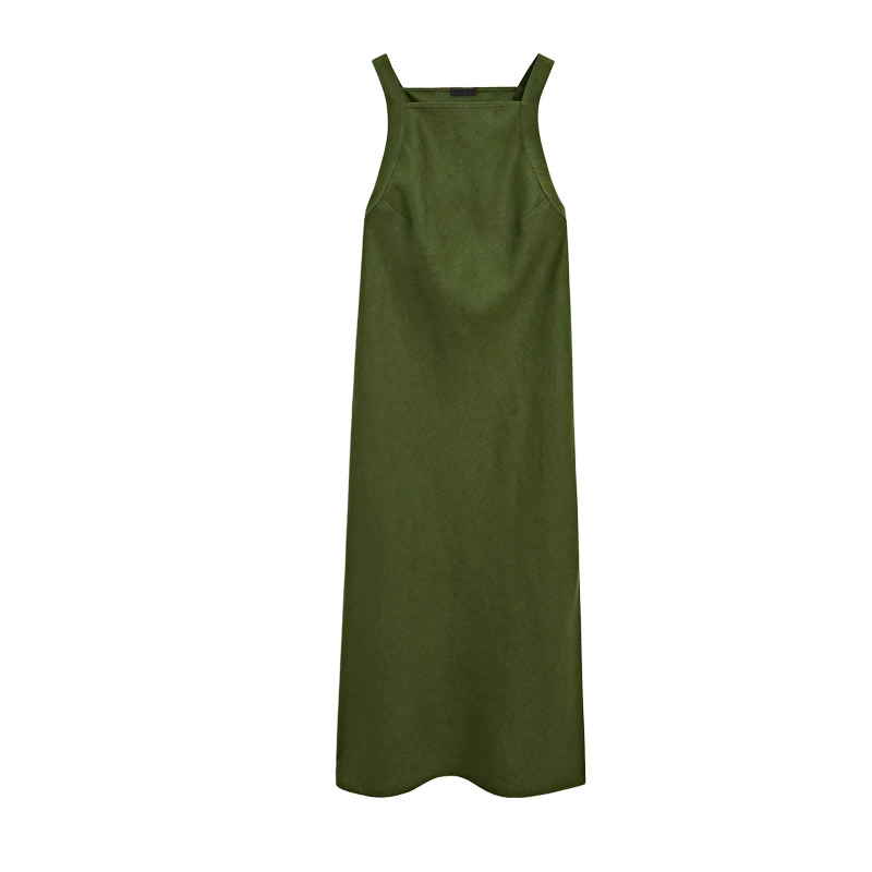 | nameOriginal | MD new spring and summer resort style elegant and dignified side slit linen blend suspender long dress 6695100 |