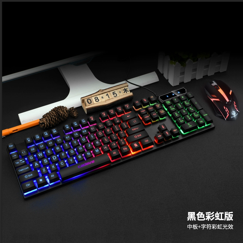 Mechanical feel wired keyboard and mouse set backlit gaming computer desktop notebook floating keycap USB connection
