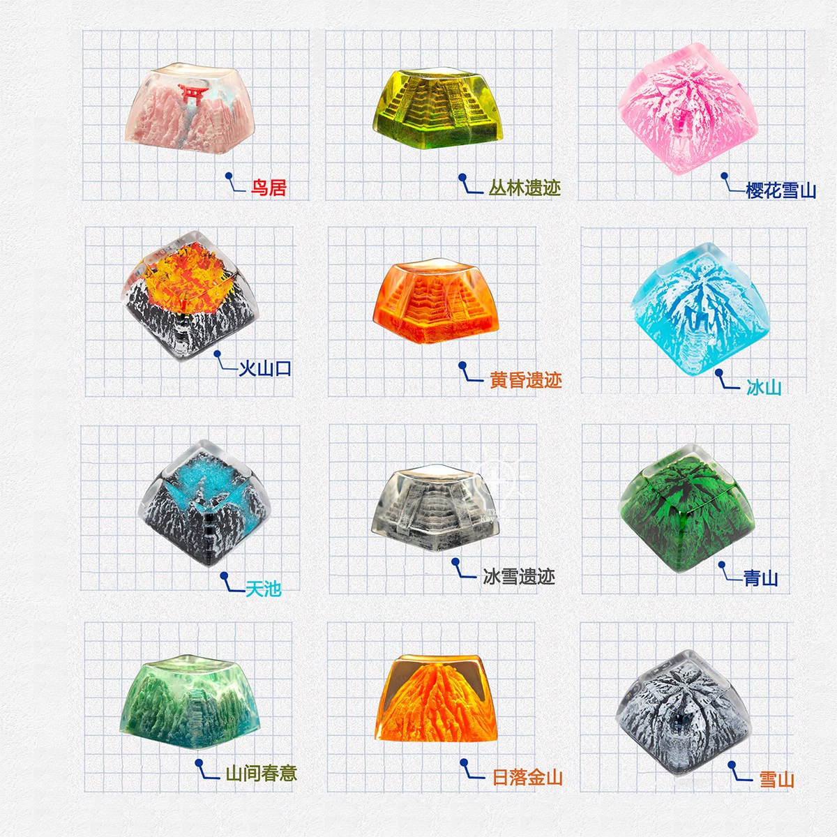 | nameOriginal | Mechanical keyboard snow mountain Fuji volcano torii glue resin keycap personalized sa high cross hole light transmission |