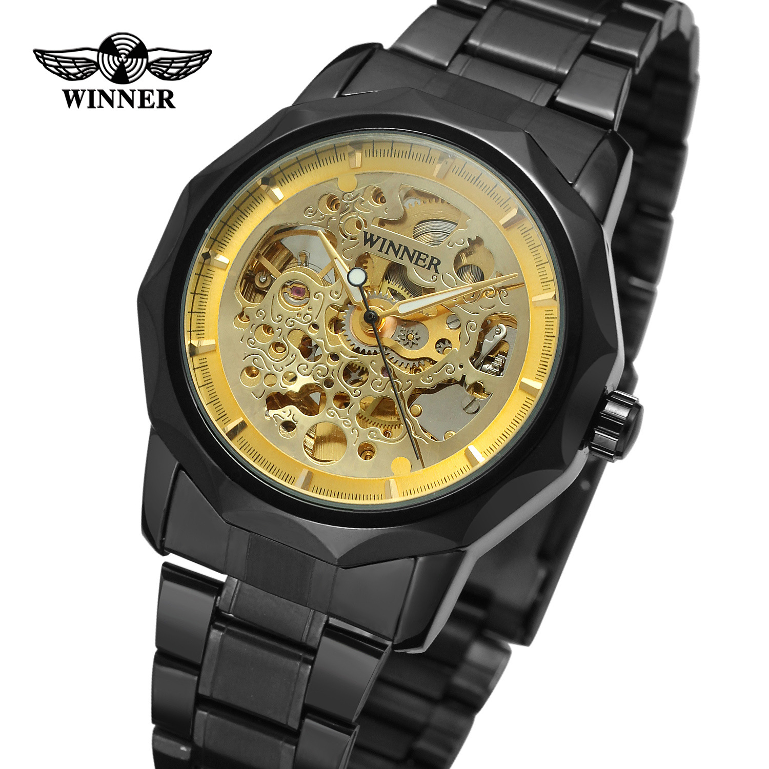Mechanical Watch Winner Mechanical Automatic Watch Men’s Steel Band Wrist Watch Gold Men’s Watch