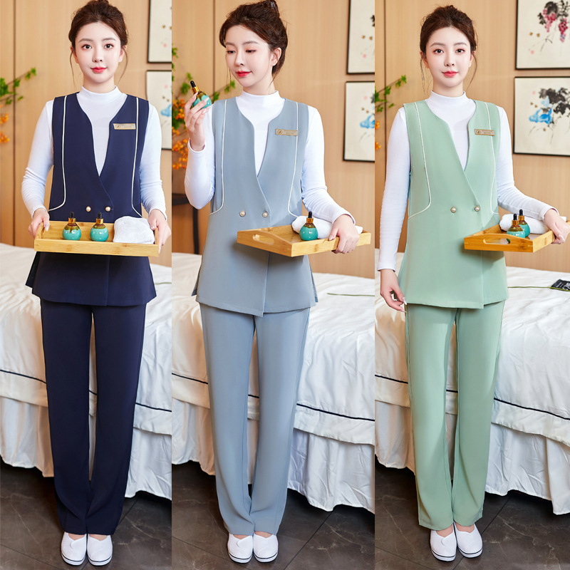 | nameOriginal | Medical Beauty front desk vest suit work clothes beauty salon beautician Health Care Center massager Hotel foot bath technician clothes |