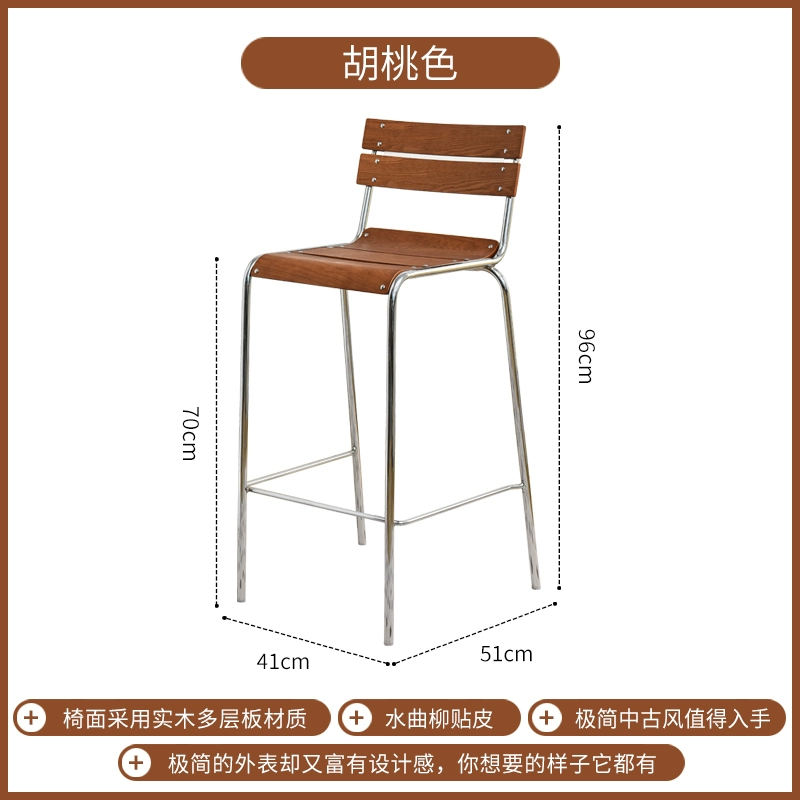 Middle -aged Bar Chair Iron Arts Furnishing Northern European Simple and Gallfoot Bar Cafe Coffee shop Commercial negotiation Bar bench
