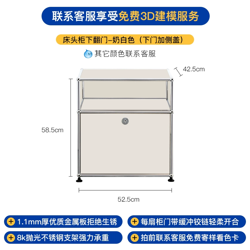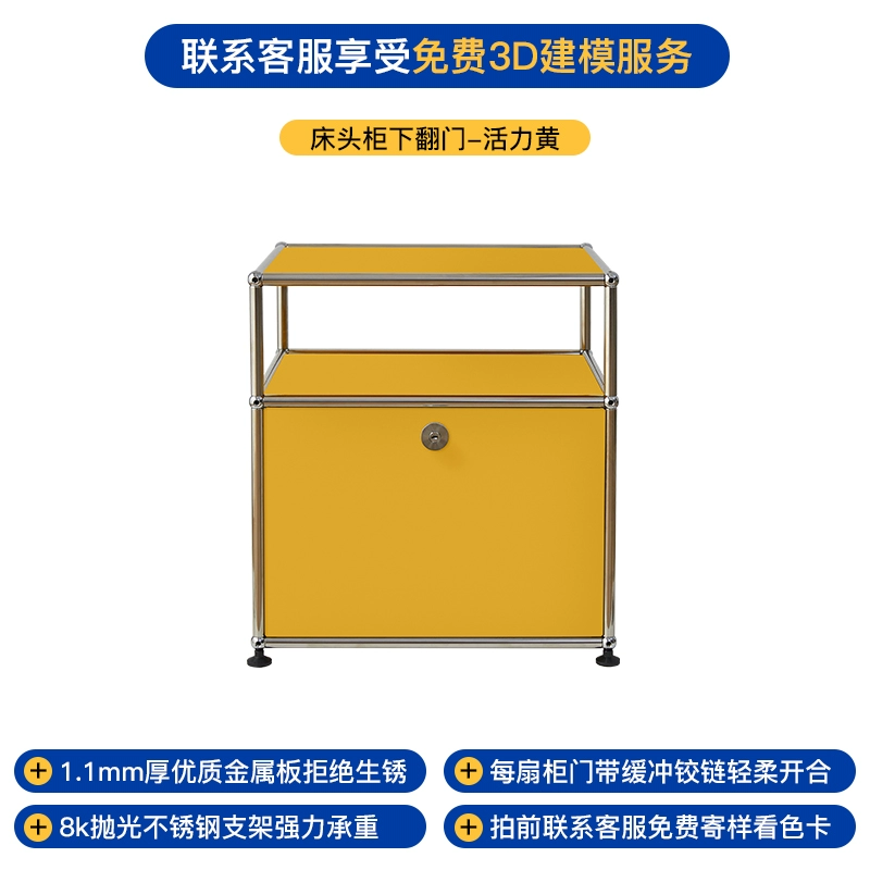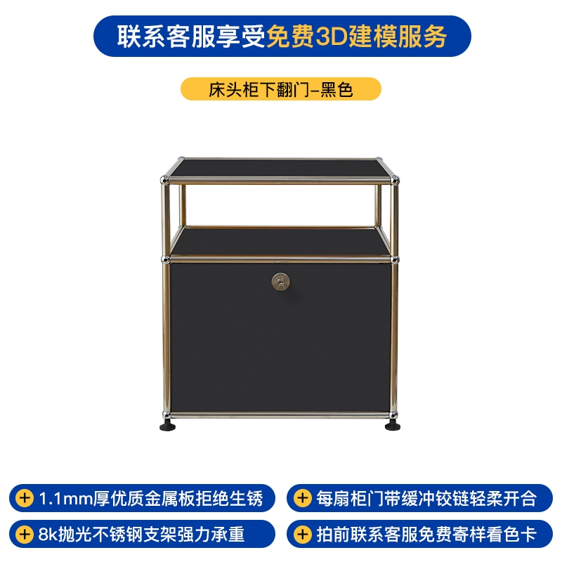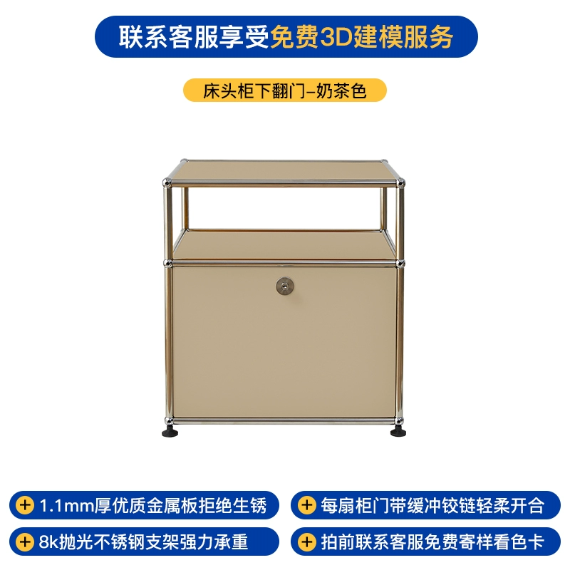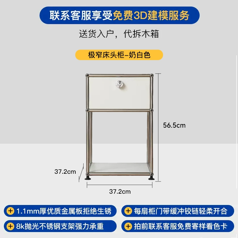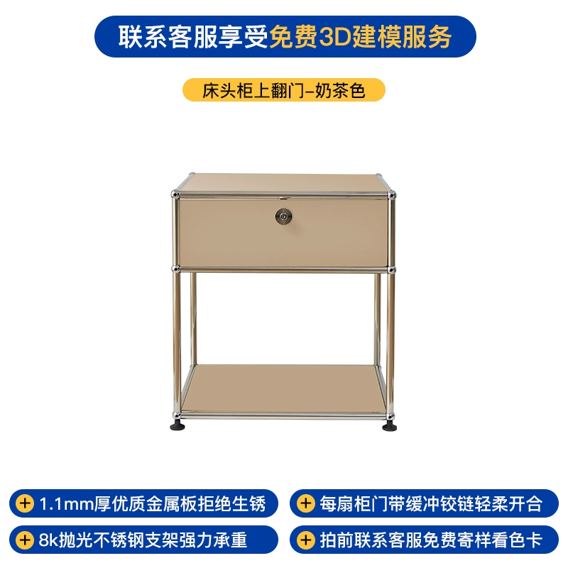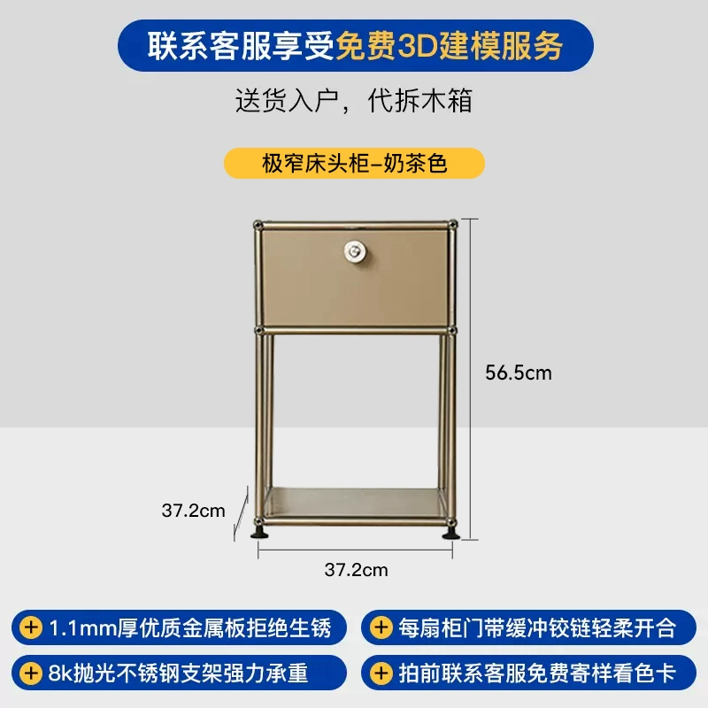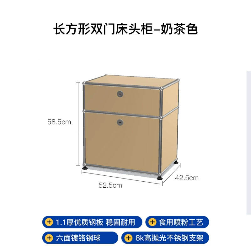 Medieval bedside table Bauhaus light luxury modular cabinet metal stainless steel minimalist bedroom ins bedside table storage