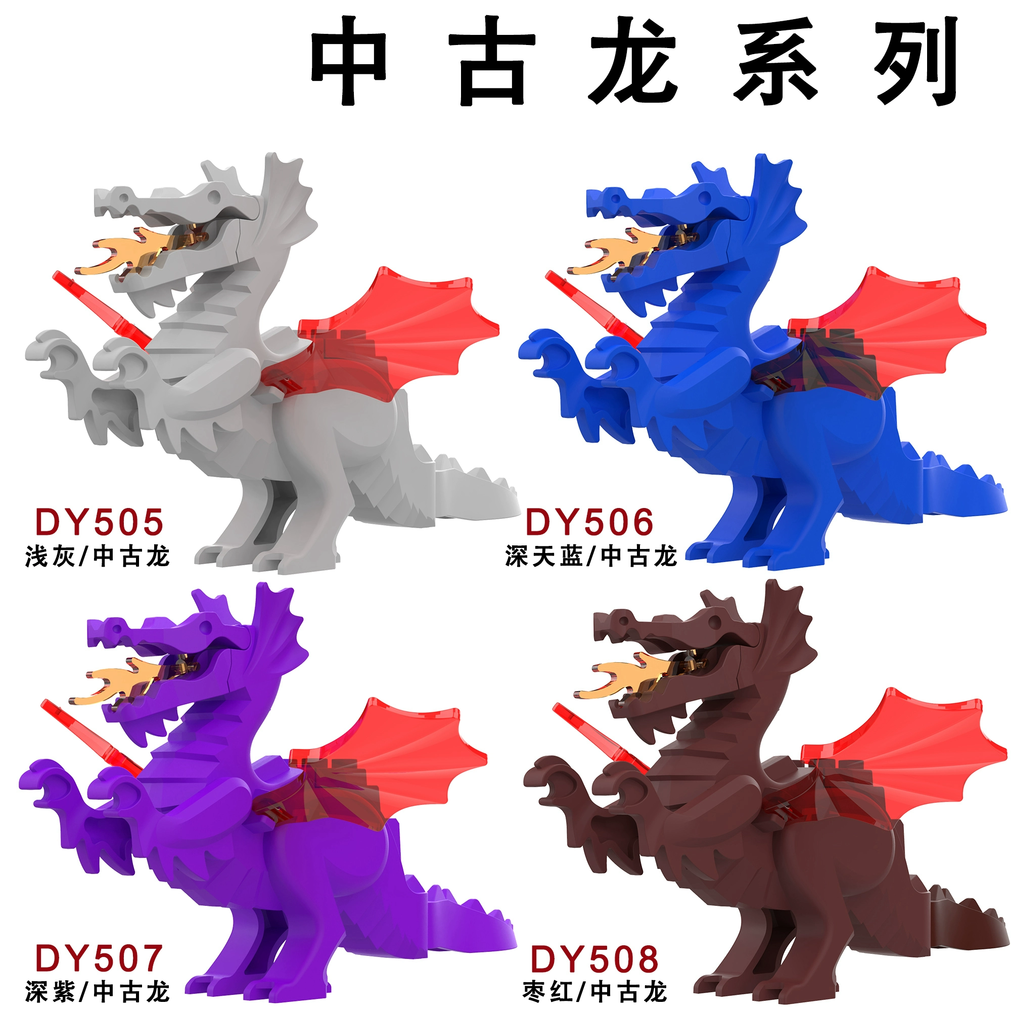 | nameOriginal | Medieval Fire Dragon, Medieval Castle, Lion King, Knight, Mount, Figure, Assembled Building Blocks, Toy Bag |