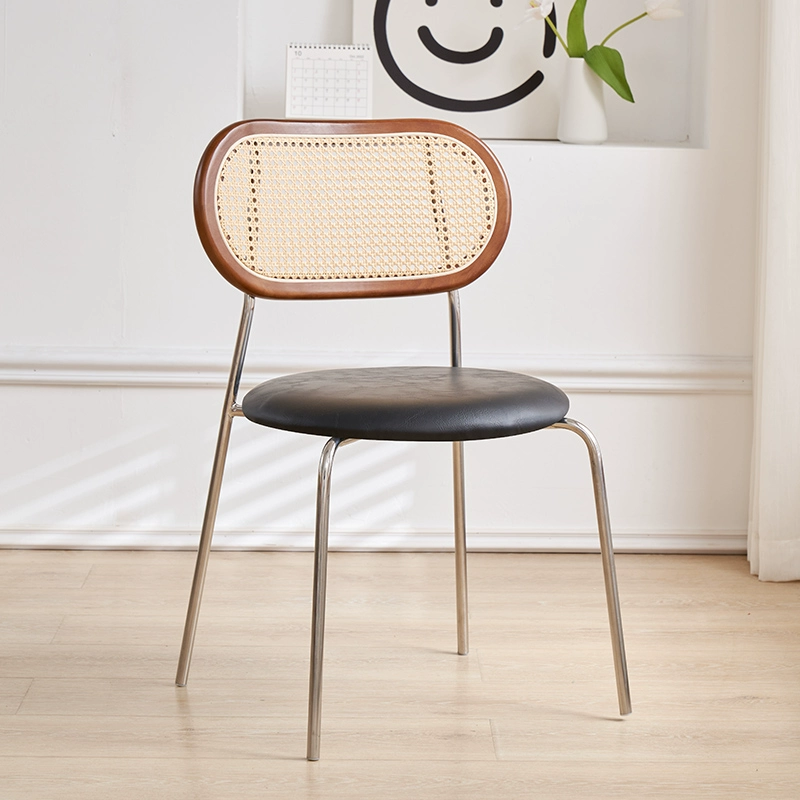 | nameOriginal | Medieval rattan dining chair, household solid wood backrest chair, wabi-sabi style light luxury cafe, casual retro restaurant stool |