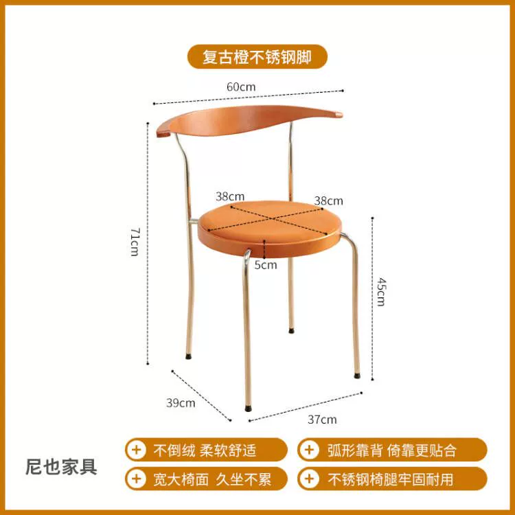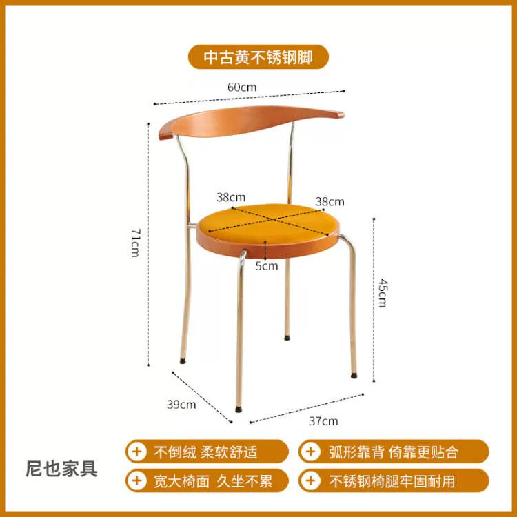 Medieval style horn solid wood dining chair home designer backrest living room chair simple retro dining table chair dressing stool