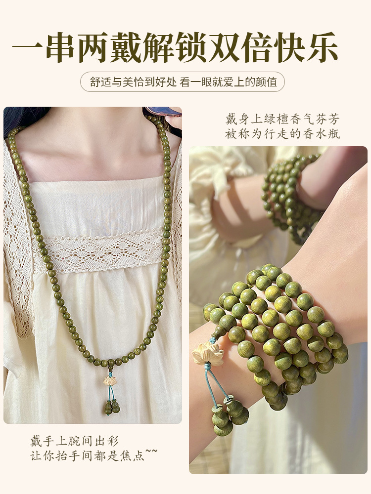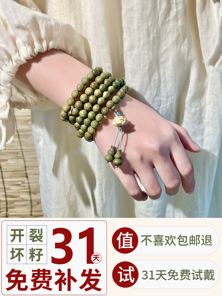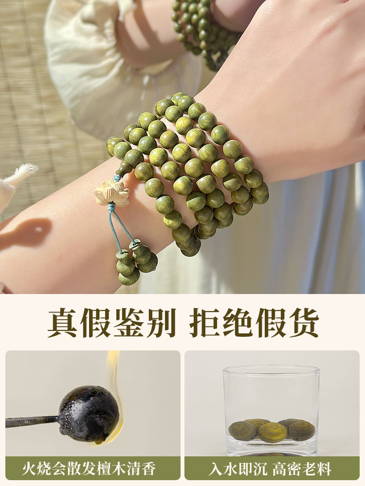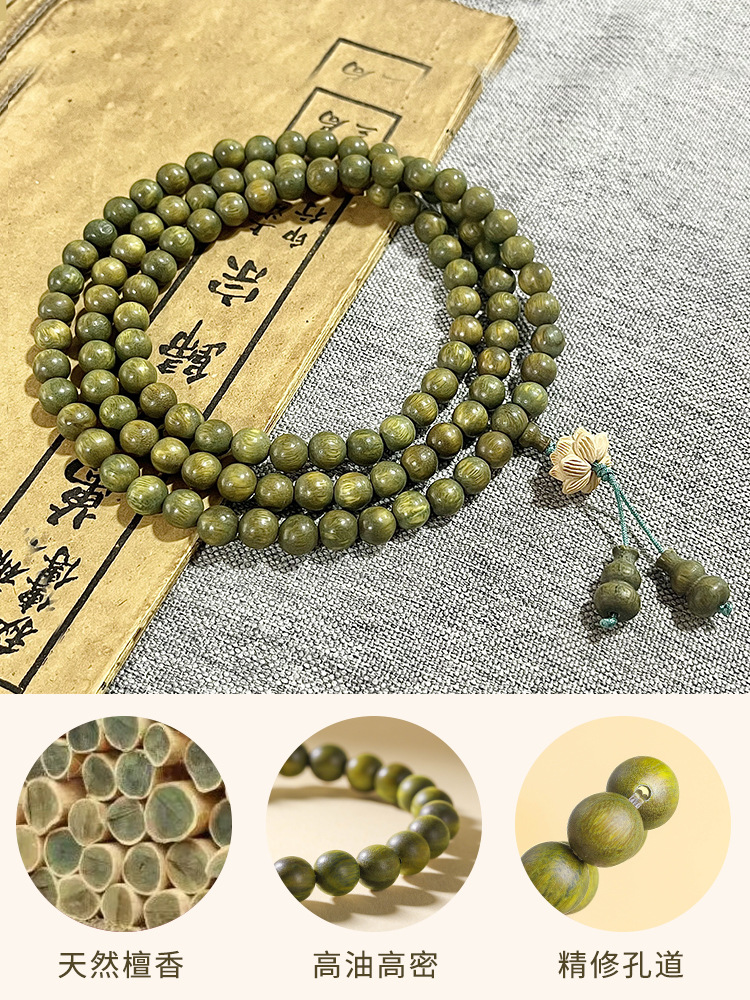 Meditation Green Sandalwood Bracelet Old Material Multi-Circle 108 Women’s Plate Play Rosary Beads Sandalwood Beads Wooden Play Bracelet