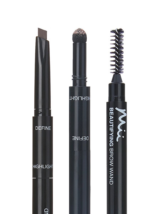 Introducing your ultimate companion for achieving stunning brows. This product helps you shape, define, and accentuate your arches, ensuring a long-lasting effect. Start by using the spoolie brush to groom your eyebrows, then proceed to fill in and define them. Finally, use the illuminator to tidy up the edges and create a polished finish.