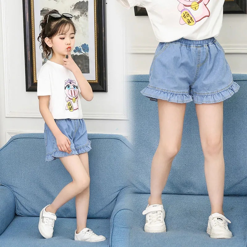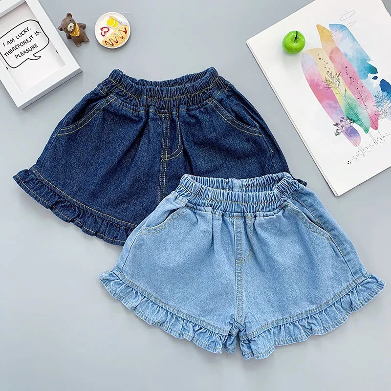 | nameOriginal | Medium and large children's Denim shorts women's summer thin baby ruffled pantskirt Western style jeans girls' sports shorts |