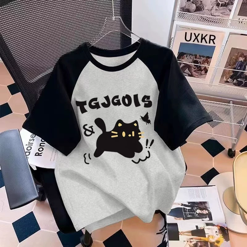 | nameOriginal | Medium and large children's loose contrasting color bottoming shirt short-sleeved T-shirt |