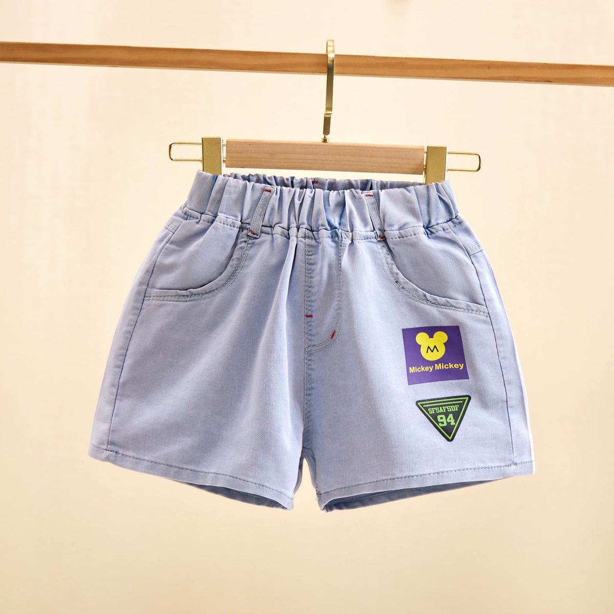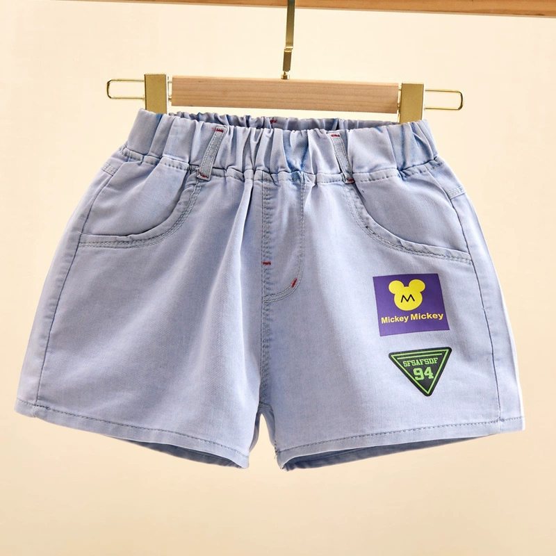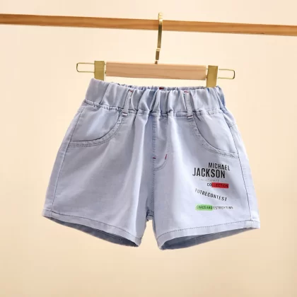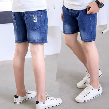 Wear mid-to-large children’s loose cotton denim shorts
