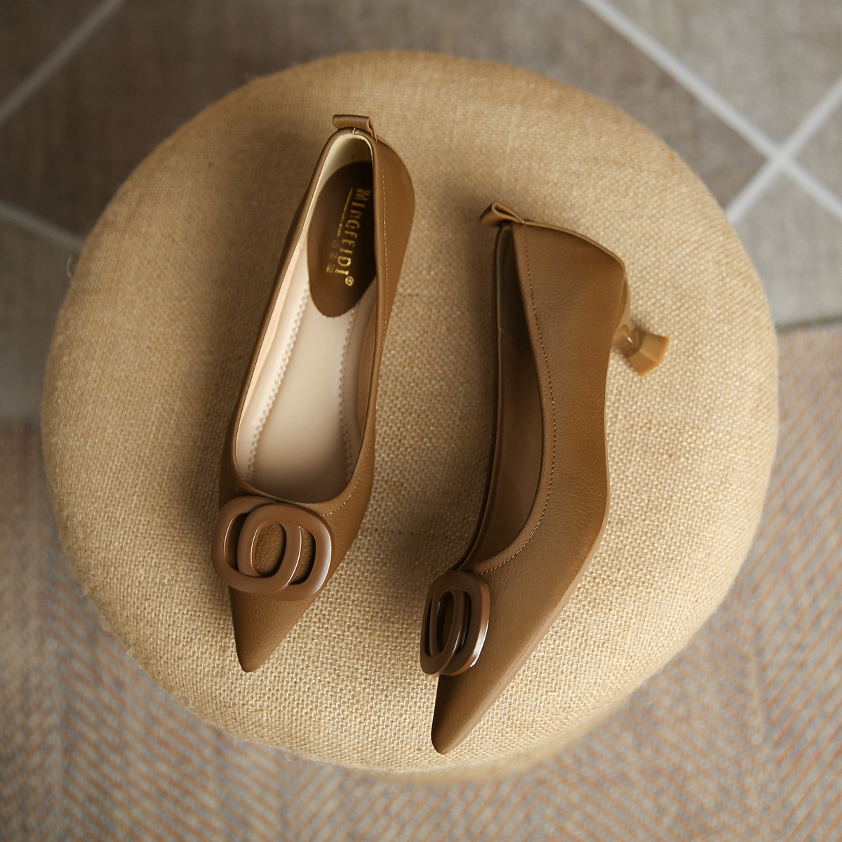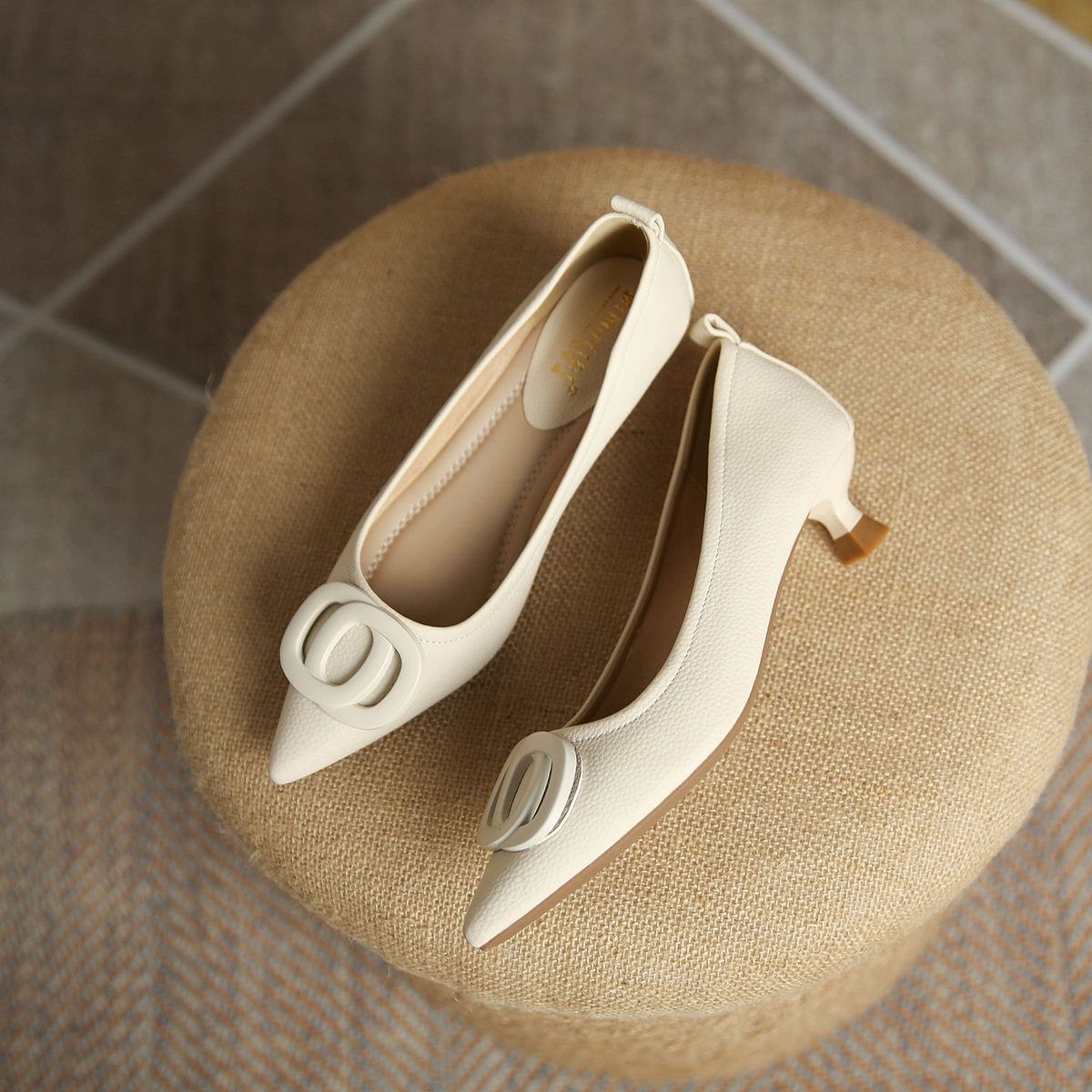 | nameOriginal | Medium heel French pointed toe shallow mouth spring black high heels |