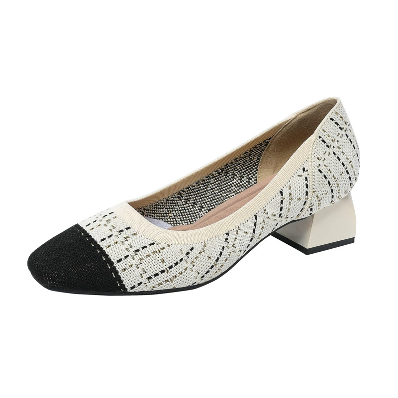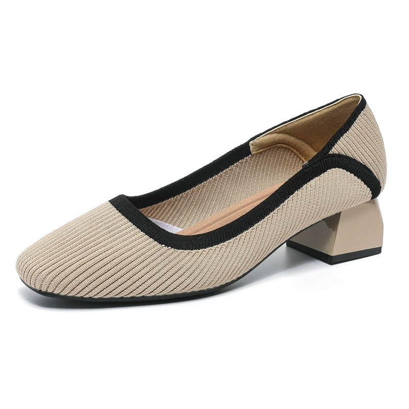 | nameOriginal | Medium heel light apricot soft sole breathable flying line princess shoes |