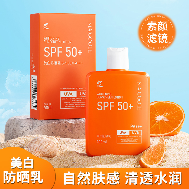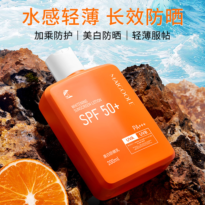 | nameOriginal | Mei Dailin Whitening Sunscreen Large Capacity Fresh and Sticky Anti-sweat Imitation UV Student Military Training Whitening Sunscreen |
