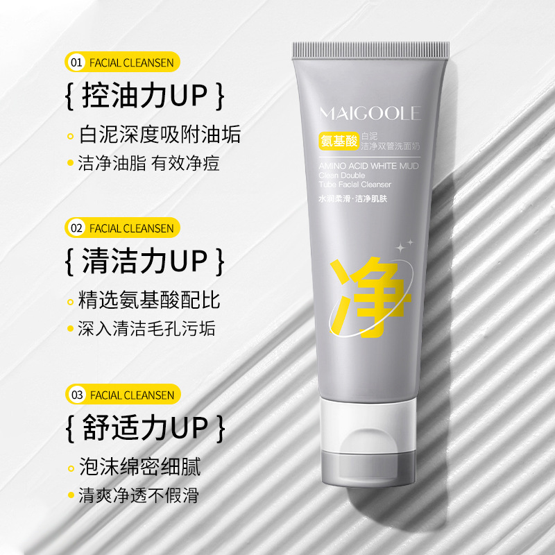 | nameOriginal | Meidelin amino acid white mud cleansing double tube facial cleanser moisturizing cleansing oil control moisturizing skin facial cleanser |