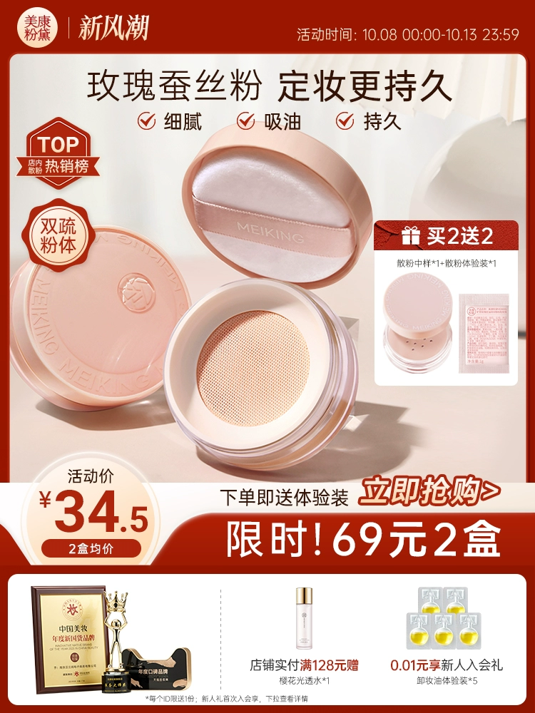 Meikang Fendai loose powder setting powder long-lasting oil control non-removing makeup waterproof matte powder authentic official flagship store
