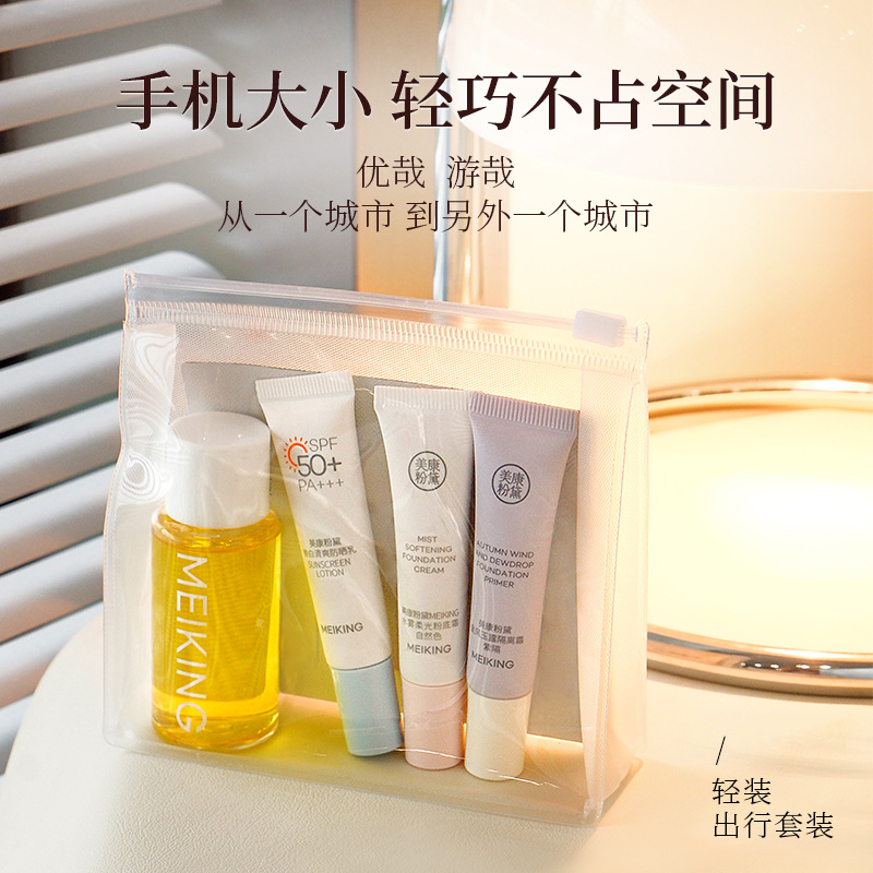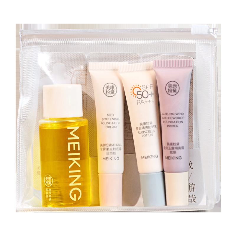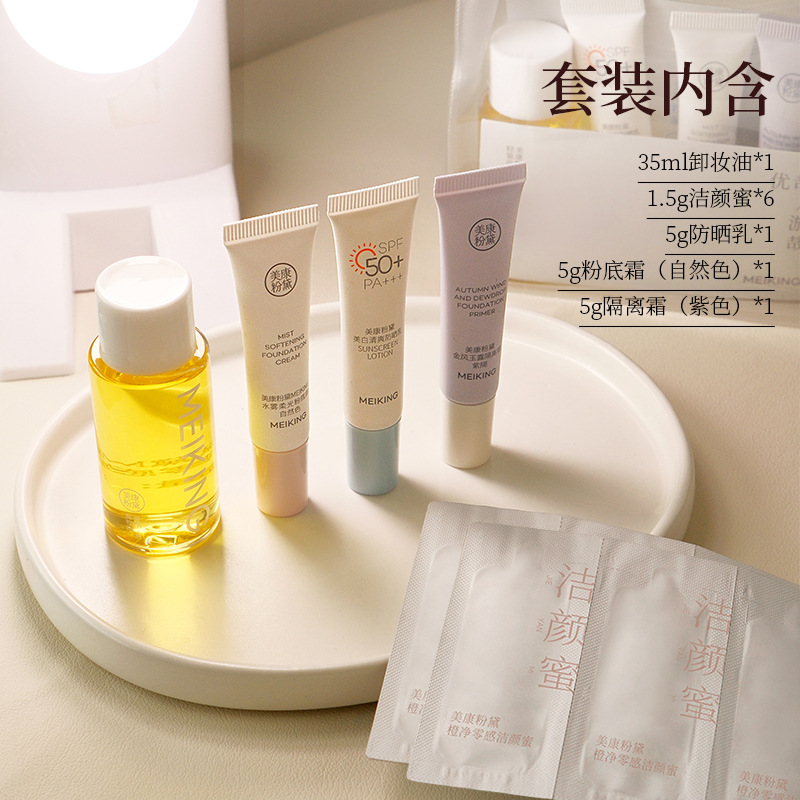 | nameOriginal | Meikang powder Dai cleansing travel suit contains cleansing oil facial cleanser sunscreen loose powder isolation cream foundation sample stool |