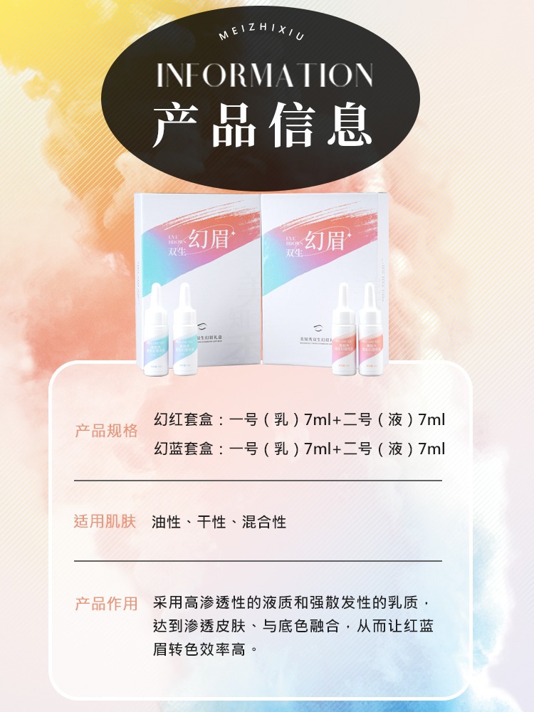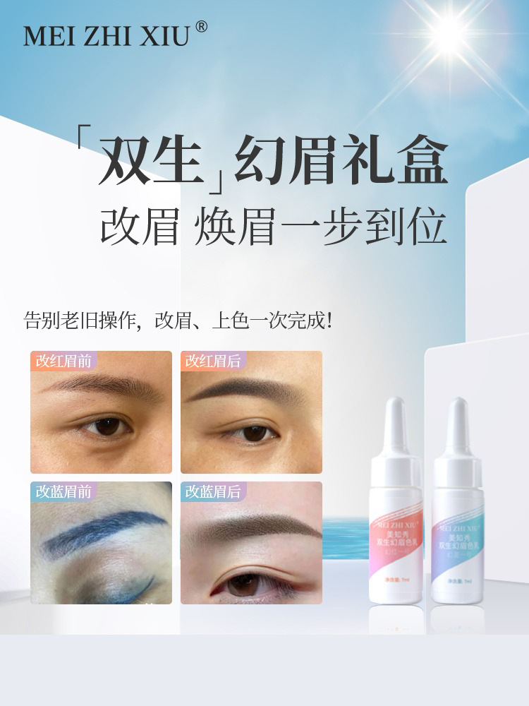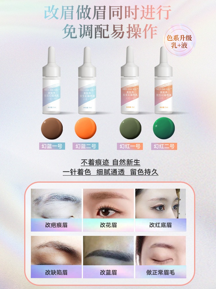 Meizhixiu Twin Magic Eyebrow Set Box Tattoos Color Tattoos Change to Red Eyebrow Blue Eyebrow Special Color Milk Pure Plant Semi-permanent