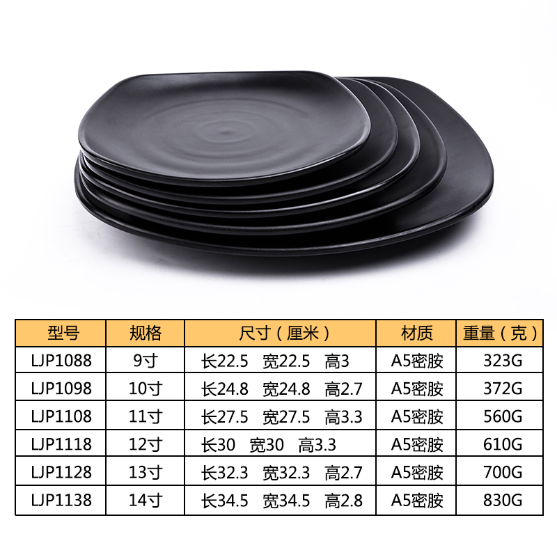 | nameOriginal | melamine black tableware plastic dish imitation porcelain plate cold dish dish barbecue hot pot plate barbecue dish commercial plate |