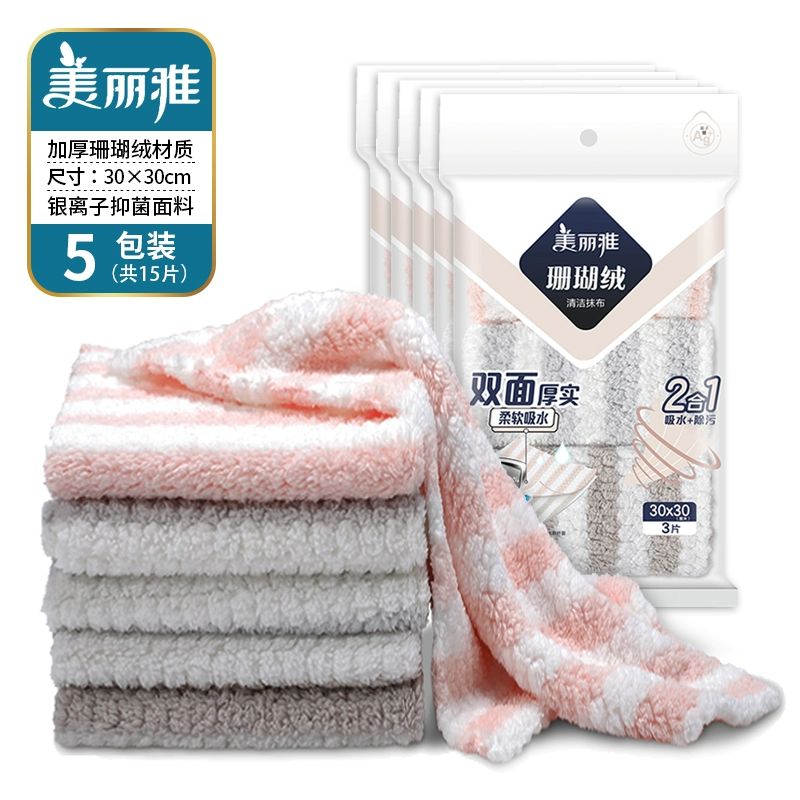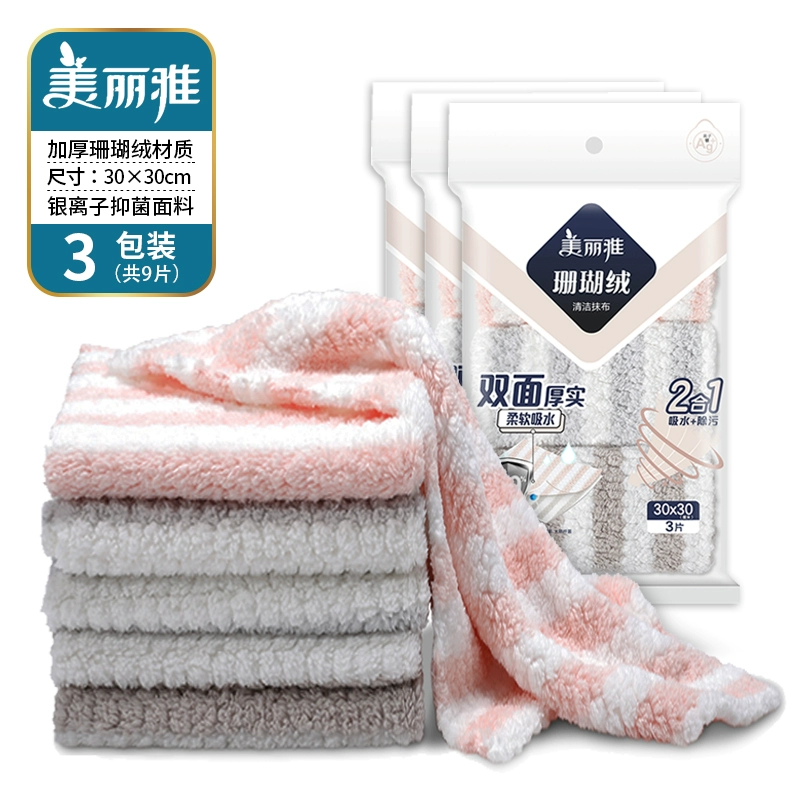 Meliya rags absorb water, are not prone to lint, antibacterial coral velvet thickened kitchen table wiping housework cleaning towels